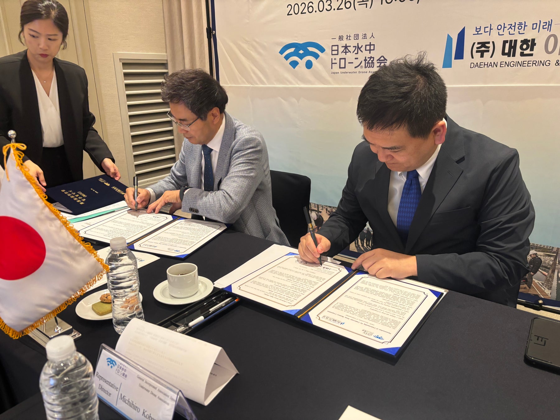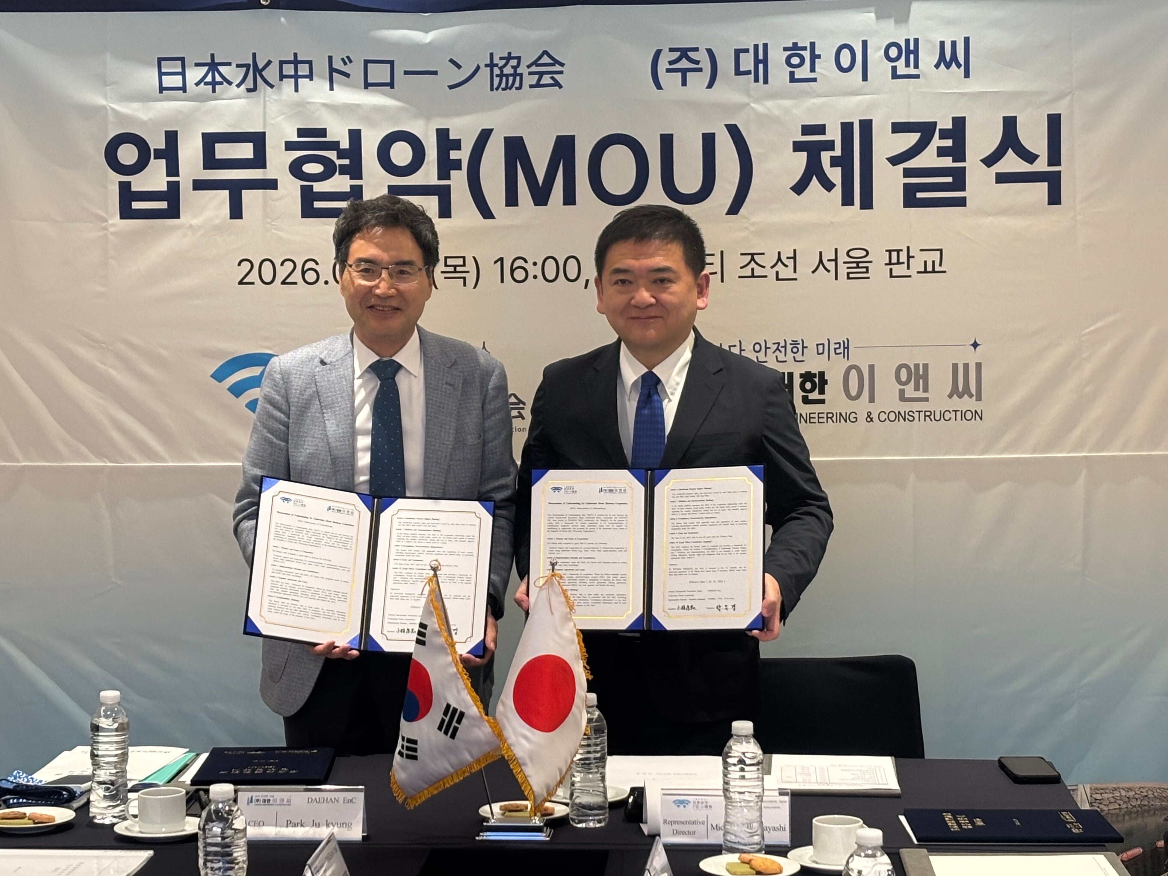 一般社団法人日本水中ドローン協会(代表理事:小林康宏/事務局運営:株式会社スペースワン、東京都台東区)は、韓国のエンジニアリング企業 DAEHAN EnC と、韓国における水中ドローンの普及活動、社会実装、人材育成などに関する協力に向け、MOU(基本合意書)を締結したことをお知らせします。