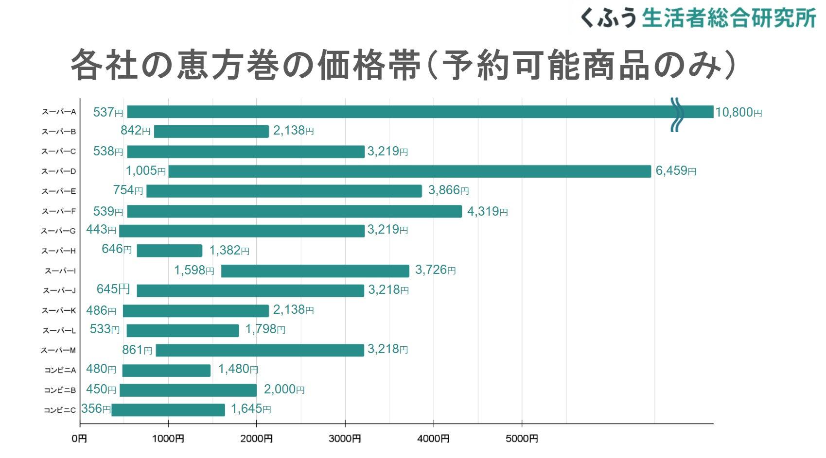 ※1 スーパーは全国展開する総合スーパー売上上位20位または地域食品スーパーにおける売上上位20位以内において、2025年の恵方巻を予約販売している企業のうち13社を対象とした。コンビニは売上上位3社を対象とした。2025年1月調査。