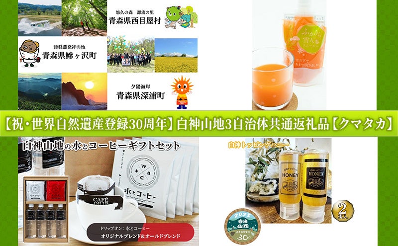 今回の企画に取り組んだのは、白神山地を有する青森県西目屋村(村長:桑田豊昭、以下 西目屋村)、青森県鰺ヶ沢町(町長:平田衛、以下 鰺ヶ沢町)、青森県深浦町(町長:吉田満、以下 深浦町)の3自治体です。3自治体ともに初の共通返礼品への取組となり、全国で共通返礼品開発の経験を持つ当社が企画段階から全面的にサポートし、5月1日(水)より寄附受付を開始しました。