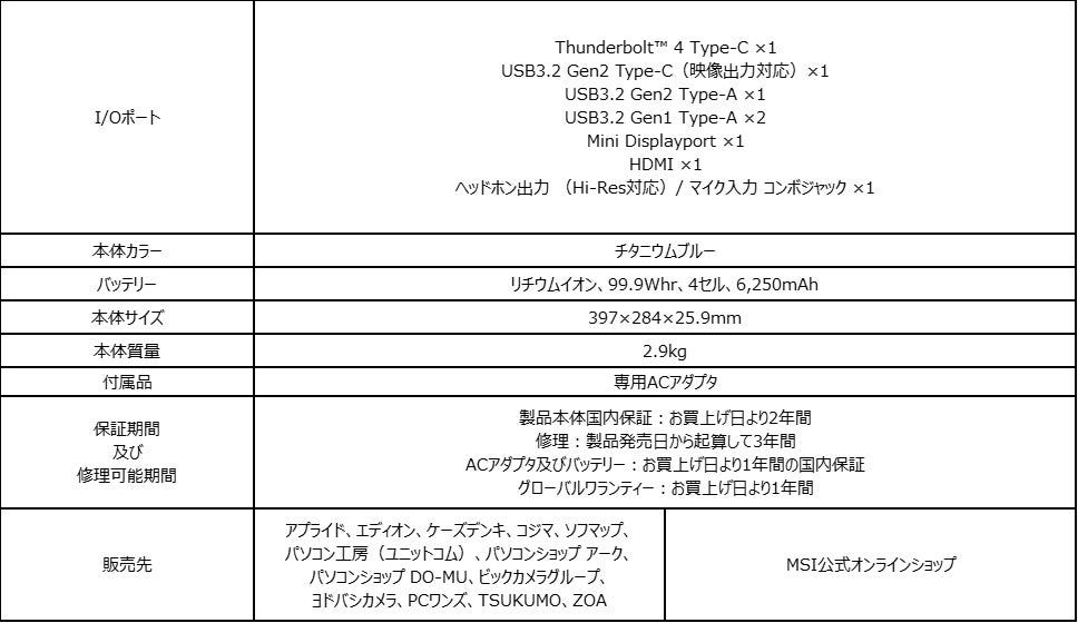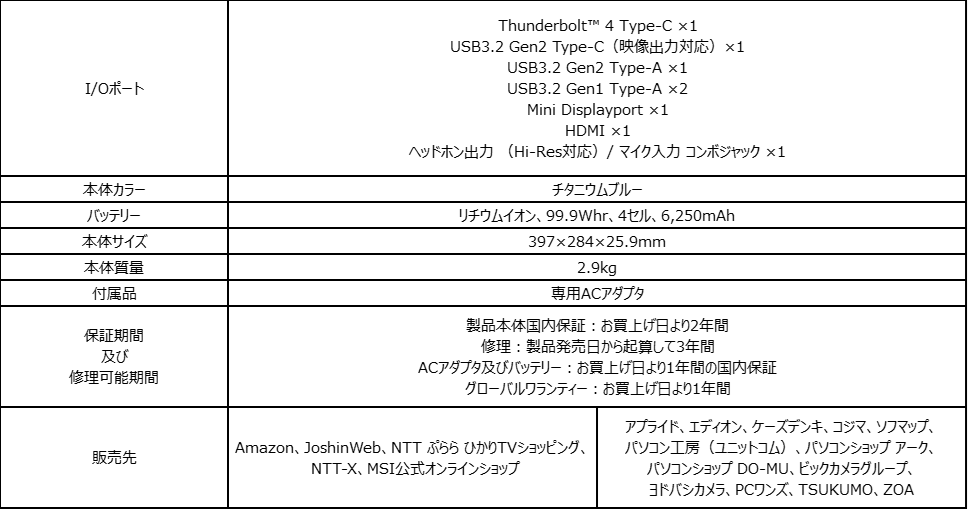 ・MSIストア「 GE76-12UHS-322JP」製品ページ: https://jpstore.msi.com/shopdetail/000000000330/