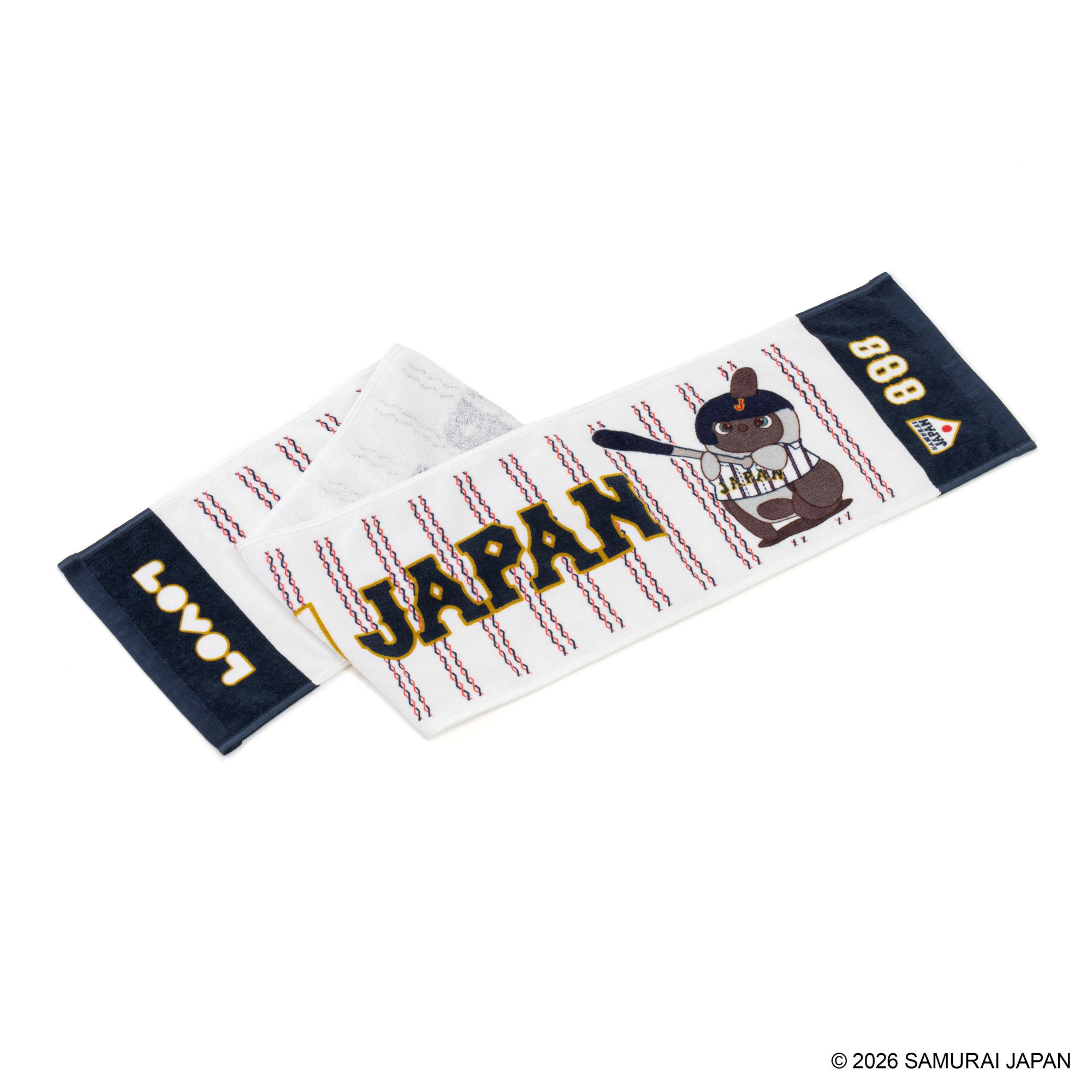 バッターに扮したかわいらしいLOVOTをプリントした、スポーツ観戦には欠かせないマフラータオル。大きな「SAMURAI JAPAN」のロゴ、「無双ストライプ」に加え、今回のコラボのための「LOVOT」ロゴもデザインされています。高品質の証しである今治ブランドタグも付いて、クオリティにもこだわりました。