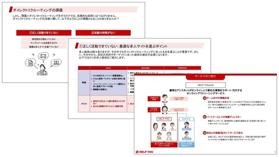 オンラインアウトソーシングサービス「HELP YOU(ヘルプユー)」を運営する株式会社ニット(本社:東京都品川区、代表取締役:秋沢崇夫、以下ニット)は、2015年にフルリモート前提で創業し、現在、約500人が日本全国・世界35カ国からオンラインで業務を遂行しています。このたび、HELP YOU(ヘルプユー)サービスサイトにて、ダイレクトリクルーティングの課題と解決策をまとめた資料を公開いたしました。