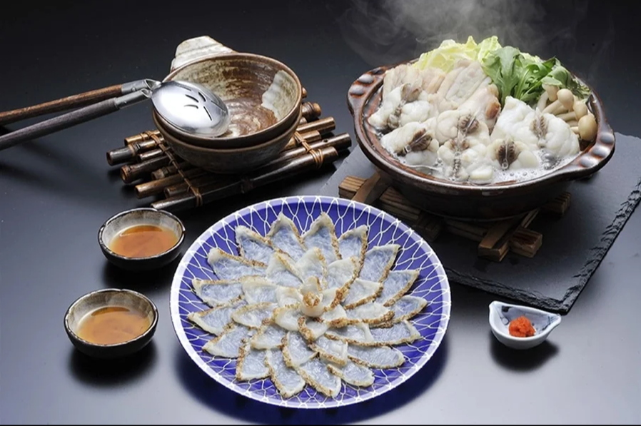 山口県萩沖で水揚げされた活〆天然マフグ身の表面を強火でサッと炙り、旨味と新鮮さを閉じ込め熟練の職人が丁寧に刺身に仕上げました。外は香ばしく、中はしっとりとした食感の炙り刺身となっています。「ふくちり」は旨味たっぷりの奥深い味わい。残ったダシで作る雑炊もお楽しみいただけます。