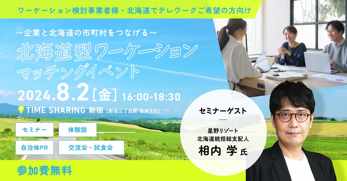 この度、首都圏の企業・個人の方に北海道でのワーケーションの魅力を知っていただき、市町村と直接マッチングすることができる北海道型ワーケーションマッチングイベントを開催します。