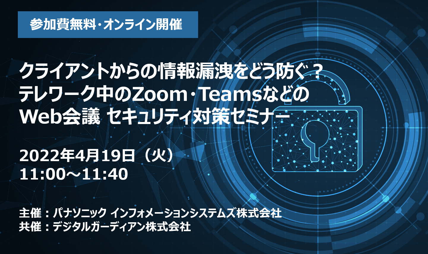 パナソニック インフォメーションシステムズ株式会社は、2022年4月19日(火)「テレワーク時代に必要となるセキュリティ対策」にフォーカスしたオンラインセミナーを開催します。