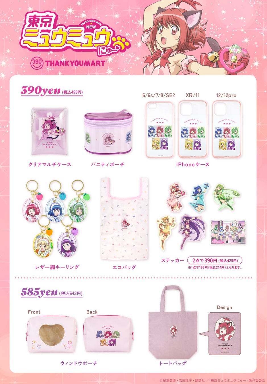 390円(税込429円)を中心としたかわいいアイテムが集まるショップ「サンキューマート」を運営するエルソニック株式会社は、TVアニメ『東京ミュウミュウ にゅ~♡』とコラボしたサンキューマート限定アイテムを、9月中旬より入荷順次販売開始いたします。漫画連載当時を知る平成世代にとっては懐かしく、令和世代には新しいキュートなアイテムラインナップです。