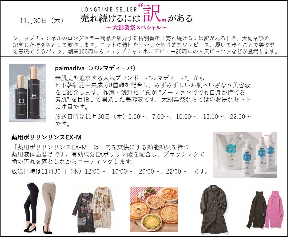 「期待のニュースターデイ」を放送、ショップチャンネルでデビューしたばかりの新鮮味のある商品が多数登場します。11月30日(木)は「売れ続けるには訳がある~大創業祭スペシャル~」として、ショップチャンネルのロングセラー商品を、大創業祭を記念した特別版で紹介します。