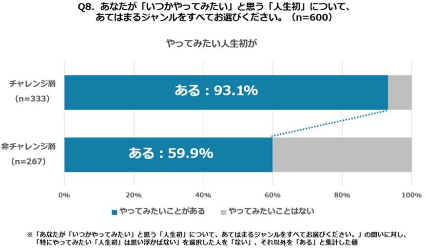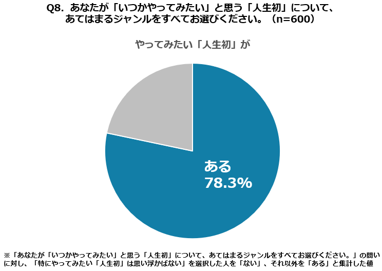 ⚫78.3%が「いつかやってみたい人生初の体験」があると回答