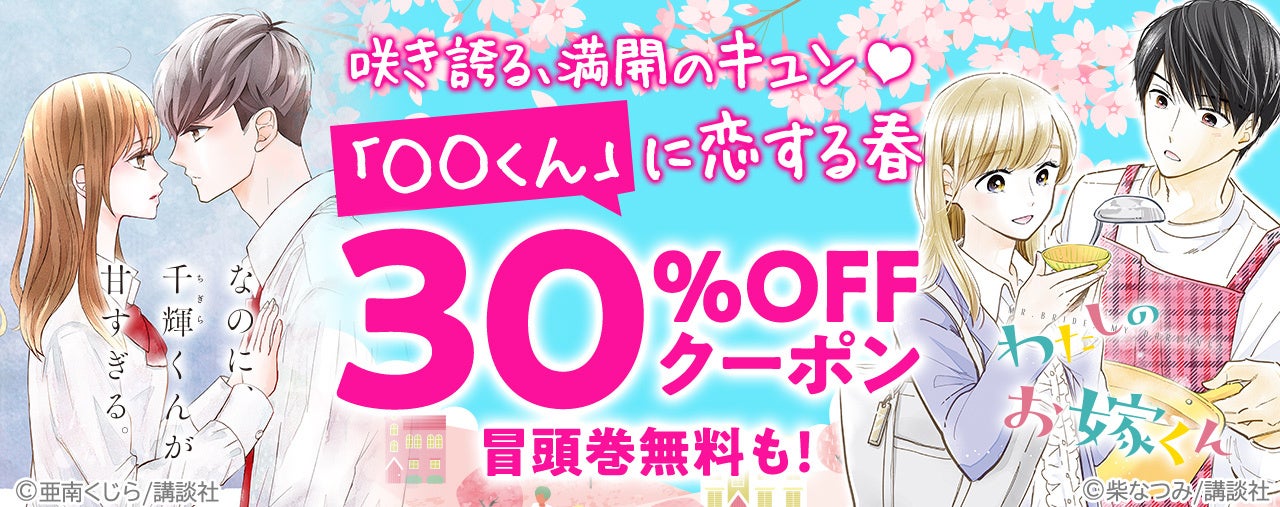 女子恋愛コミックは「◯◯くん」が旬!!『なのに、千輝くんが甘すぎる。』『わたしのお嫁くん』など対象作品30%OFFクーポン&冒頭巻無料試し読み