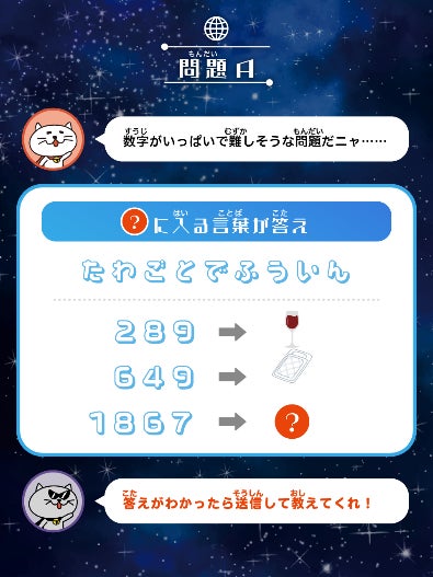 2.お友達登録したら、さっそくLINEアカウントから出題されるナゾトキにチャレンジ。 最初の3問はLINE上に表示されるヒントを参考に回答。 次の3問はプレミアム・アウトレット施設内にある3か所の「手がかり」を探して回答。 最後の1問はLINE上に表示されるヒントを参考に回答し、全7問が終了。 |