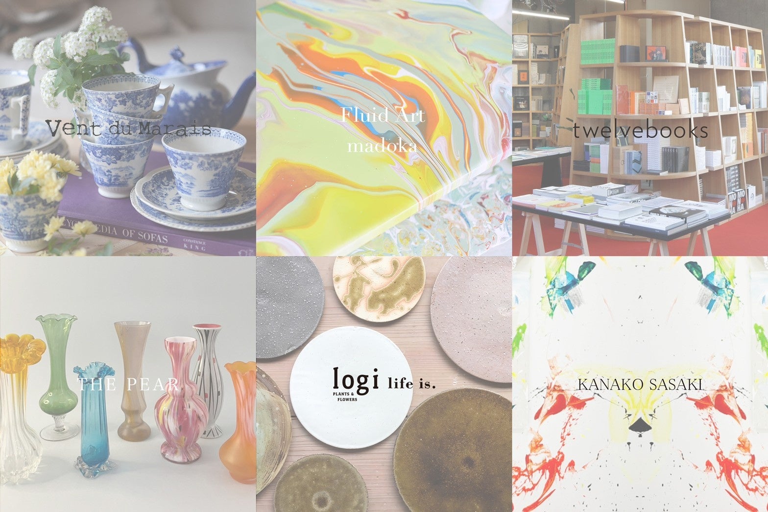今回のアートコンテンツは、フランスとイギリスを中心としたアンティーク&ブロカント雑貨のvent-du-marais(ヴァン デュ マレ)の食器や、フルイドアートを手掛ける注目のアーティスト、madokaさんの作品を展示販売します。さらに、これまでも人気のtwelve-booksの洋書や、logi PLANTS&FLOWERSとのフラワーとコンテンツなど、ライフスタイルにも寄り添った、本質的な豊かさを求める方へ向けたアイテムを多数揃えています。店内には、ペイントアーティストの佐々木香菜子氏のアート作品も展示します。