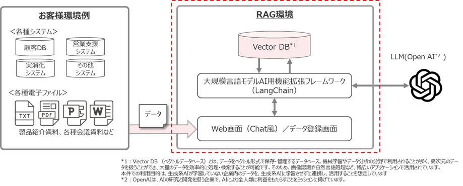 ACCESSは、ITソフトウェアの分野で広く認知された企業であり、生成AIを含む最先端技術の開発において豊富な経験と実績を持っています。今回、ACCESSはその専門技術を活かし、セキュアな環境で自社のデータを登録できるRAG(Retrieval-Augmented Generation)環境の構築を実現しました。このセキュアな環境は顧客へのトライアル提供が可能であり、生成AIを社内導入していない企業におけるユースケース検証を実施することができます。