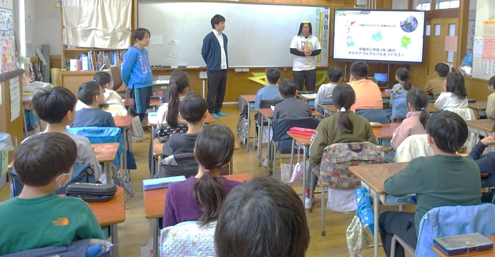 早稲田小学校で1年間のサステナブル学習を振り返る出前授業を実施 タブレット端末でアルバムを作成