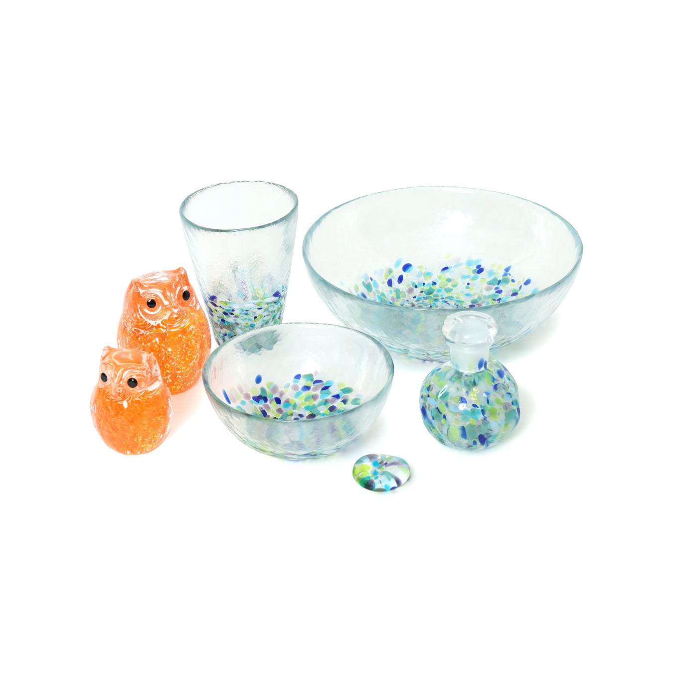 青森県の自然を表現した新色のアイテムとともに、ガラスの縁起物“ふくろうの置物”も登場。