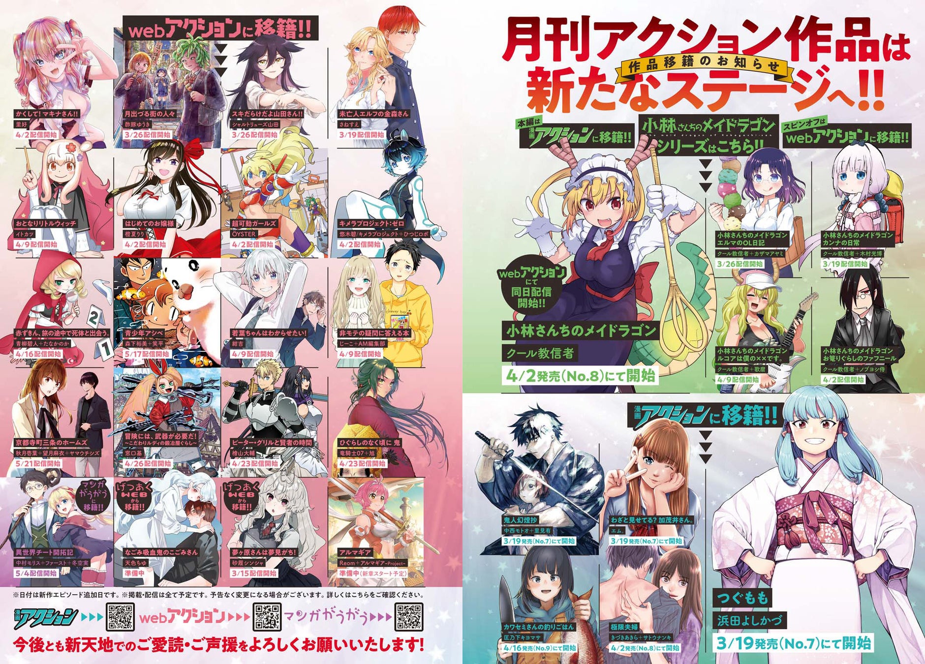 『小林さんちのメイドラゴン』『つぐもも』などの人気漫画が「漫画アクション」や「webアクション」に移籍連載決定でパワーアップ!