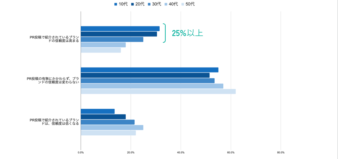 ・80%のユーザーがPR投稿を見た後、ブランドへの信頼度があがる・変わらないと回答