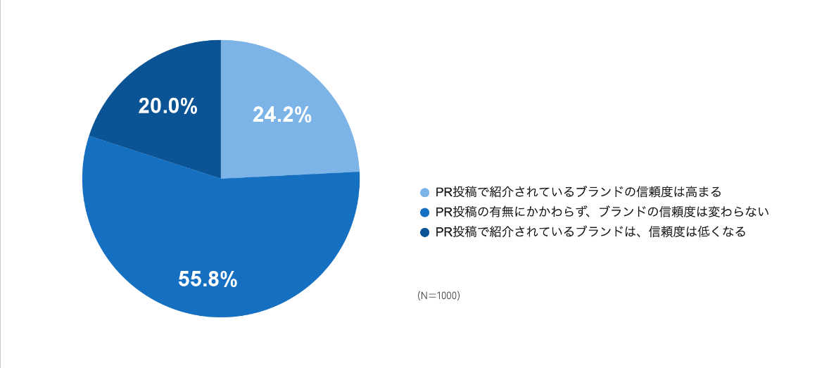 PR投稿されたブランドへの信頼度は、高まる24.2%、変わらない55.8%