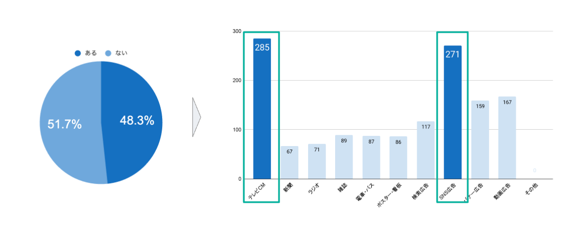 PR投稿を見たあと同じブランドの広告をみたことがあるかという質問を実施。さらに、広告を見たことがあると答えた人に、どの広告メディアで見たことがあるかを質問。テレビCMに次いでSNS広告が多い結果となった。