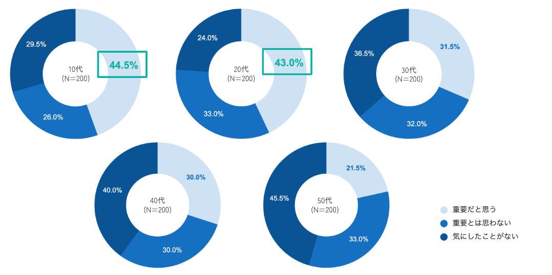 「PR投稿を見た時、その情報が信頼できるものかどうかの判断にインフルエンサーのフォロワー数を重視するか」という質問では、10代20代はフォロワー数を情報信頼度の参考の一部にしている傾向がある一方で、40代50代は「気にしたことがない」「重要だとは思わない」の回答が多いことがわかった。インフルエンサーを選定する際、フォロワー数を重要視するかどうかは、ターゲットとなる年代によって使い分けることが有効であると考えられる。