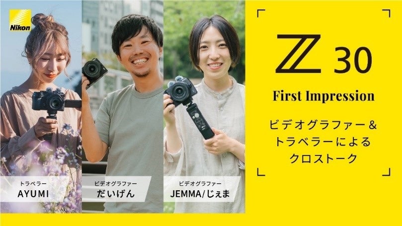 その他にも、Twitterでの「ニコン Z 30 発売記念キャンペーン #VlogwithNikon」実施や、ニコンプラザ東京・大阪での、だいげん氏監修による「Z 30」を使ってVlog撮影体験をしていただける「Touch & Tryコーナー」を展開いたします。