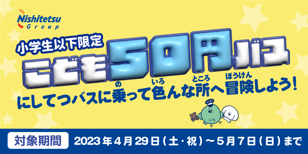 【GWはにしてつバスで出かけよう!】「こども50円バス」を実施します!