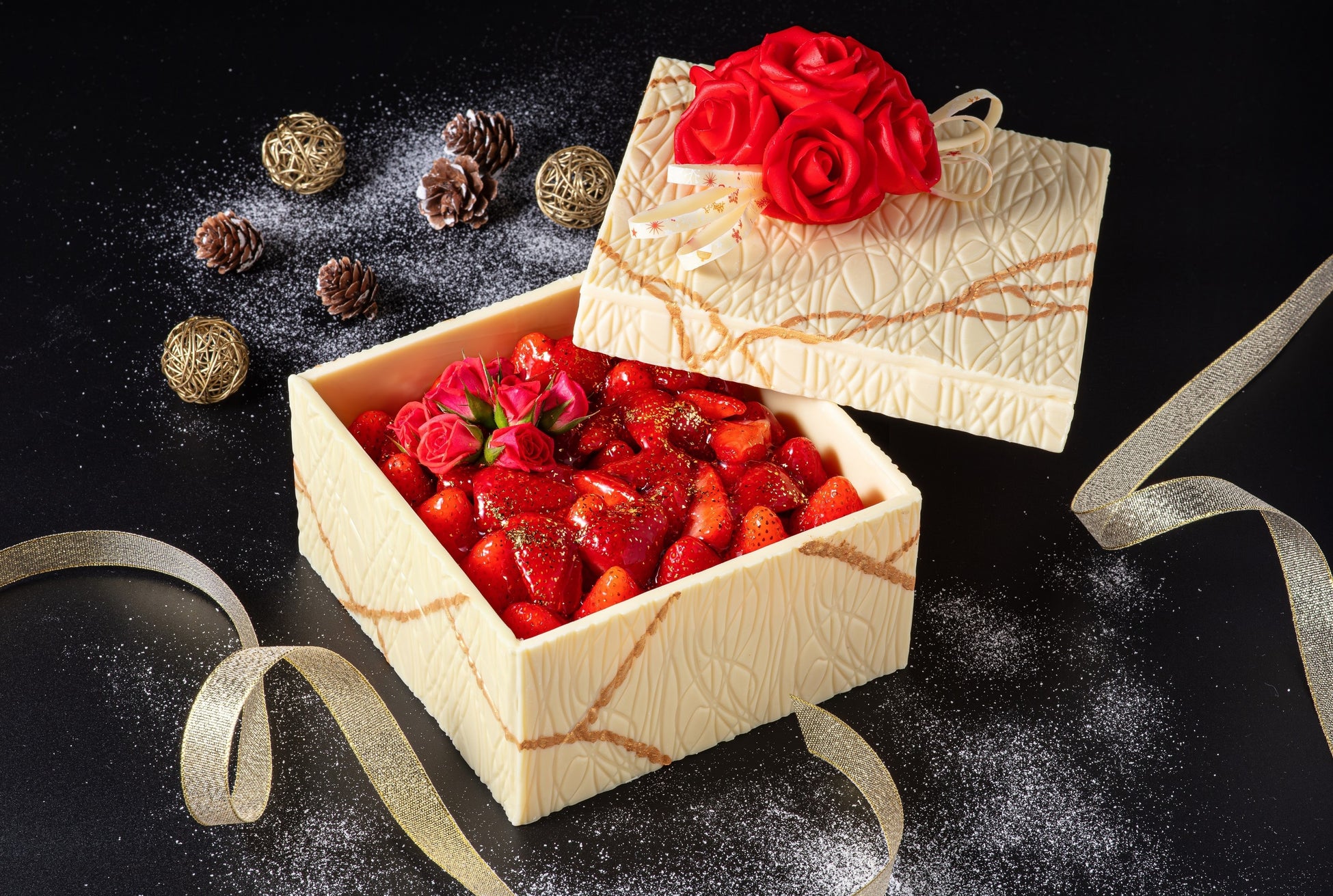 【グランドプリンスホテル新高輪】輝くたっぷりの苺が姿を見せるチョコレートで模ったプレゼントボックスなど 華やかなひとときを彩る4種のクリスマスケーキを販売