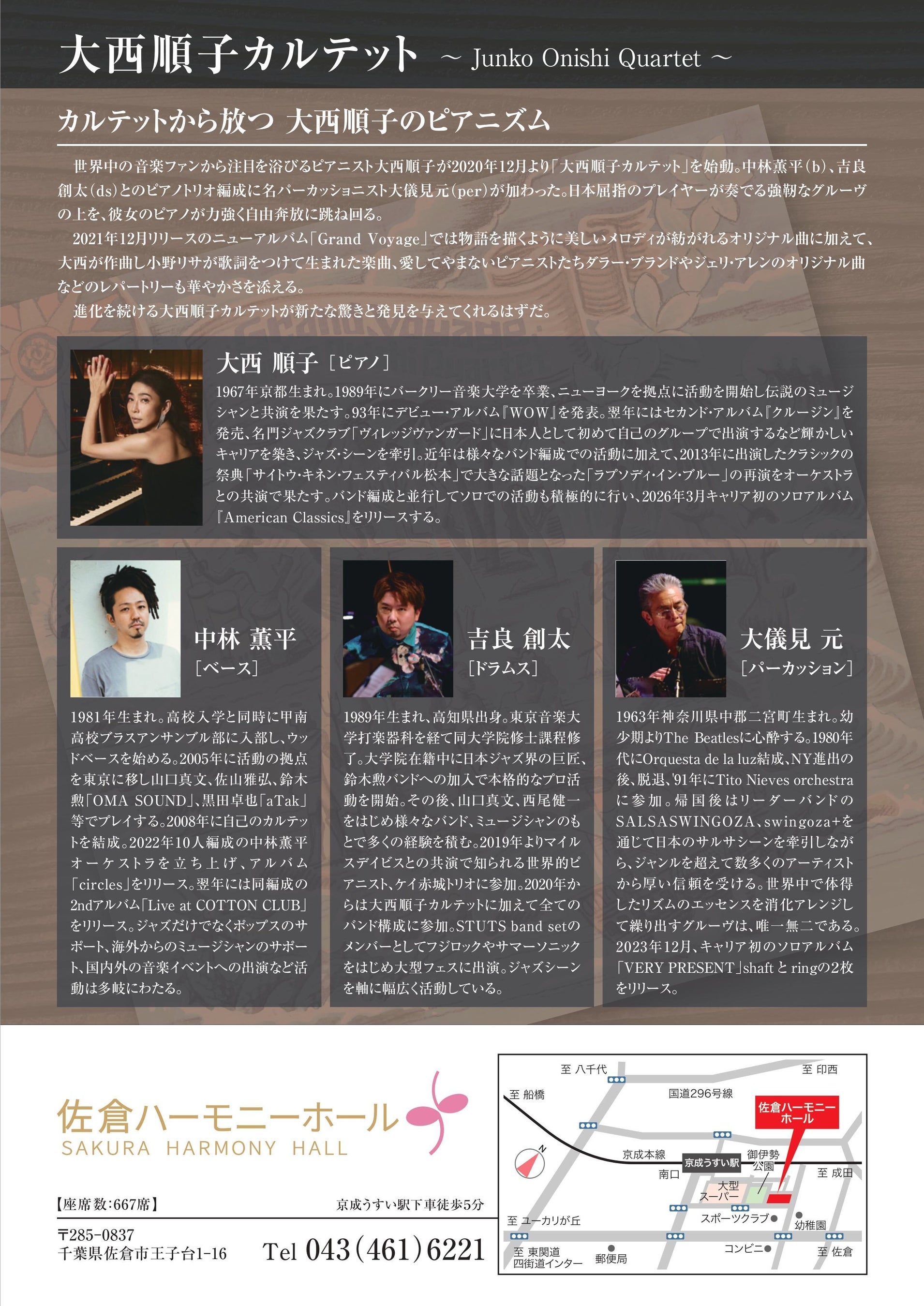 2026年6月20日(土) 大西順子カルテット 16:00開演 (佐倉ハーモニーホール)