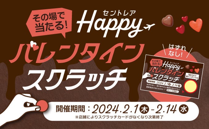2024年2月1日(木)~2月14日(水)の期間、バレンタインに合わせてスクラッチくじキャンペーンを実施。対象店舗でのお買い上げで、その場で賞品が当たるスクラッチくじに参加できます!