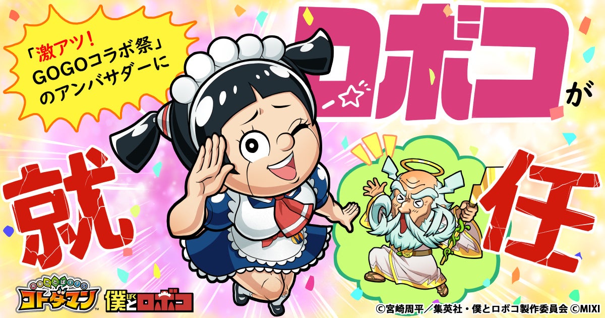 なお、「激アツ!GOGOコラボ祭」のアンバサダーには、TVアニメ「僕とロボコ」よりロボコが就任し、期間中コトダマンアプリ内外でイベントを盛り上げます。