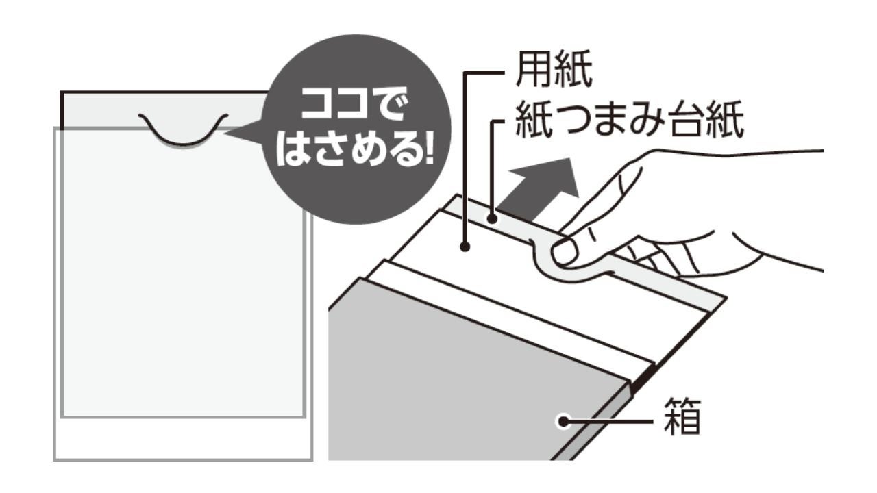 - 用紙が取り出しやすい「紙つまみ台紙」入り ※特許出願中