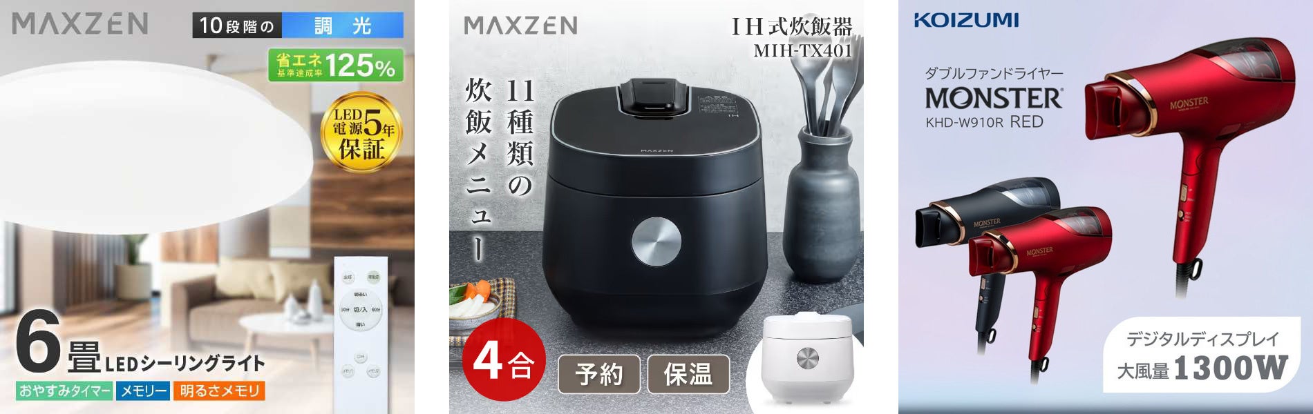 家電販売で培った経験を活かし、お客様から本当に必要とされるものを創るために生まれたジェネリック家電のプライベートブランドとして、液晶テレビ・冷蔵庫・洗濯機や各種生活家電における機能と価格のバランスを徹底追求した「MAXZEN(マクスゼン)」の企画開発・製造・販売を行っております。