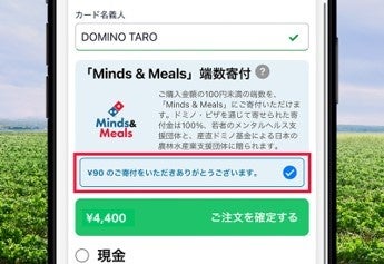 どのピザを購入されても、ご注文総額を100円単位に切り上げた端数(差額)を、お客様に任意で「Minds&Meals端数寄付プログラム」に寄付いただき、社会や環境問題の改善に取り組む生産者の活動を支援していただけます。