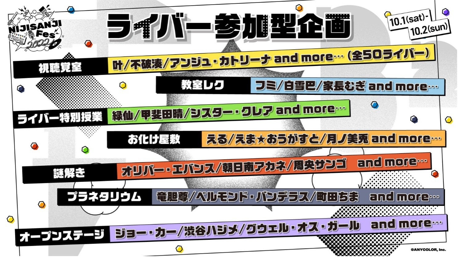 ANYCOLOR株式会社(本社:東京都港区 代表取締役:田角陸、以下「当社」)が運営するVTuber / バーチャルライバーグループ「にじさんじ」は、「にじさんじフェス2022」の全ステージプログラム、ライバー参加型企画の出演ライバー情報、グッズ第1弾先行販売情報をお伝えします。