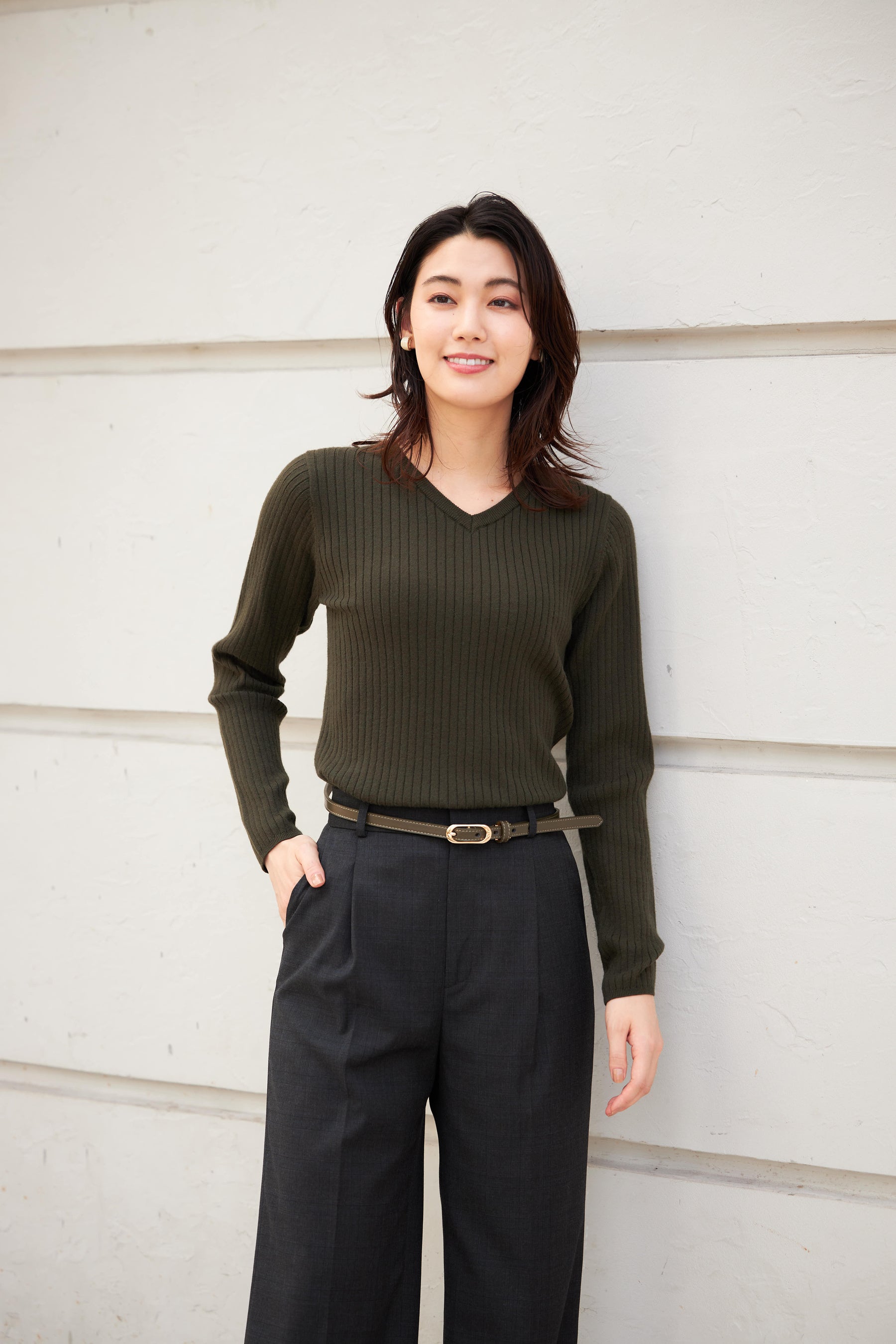 ワイドリブVネック・・・ネービー、ダークグリーン、ブラウン