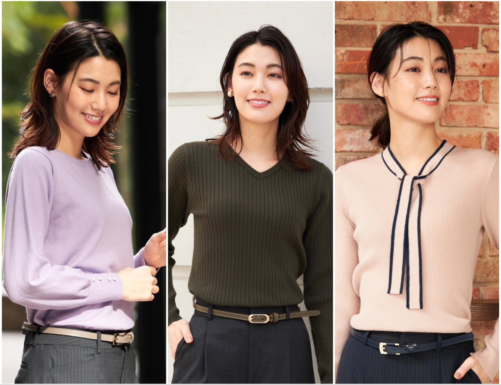 このたび新たに発売する新作セーターは、ビジネスシーンやスーツスタイルになじむシンプルなデザインをご用意しました。抗ピリング加工を施した素材を採用し毛玉になりにくく、帯電防止テープを採用しているため乾燥した季節の気になる“パチパチ”を対策。ウォッシャブル機能つき自宅で簡単にケアができる充実機能のセーターに仕上げました。クルーネック、Vネックのベーシックデザインに加え、ブラウス感覚で着られる配色ボウタイデザインの全3種のデザインでスーツインもオフィスカジュアルも着まわせる一着です。