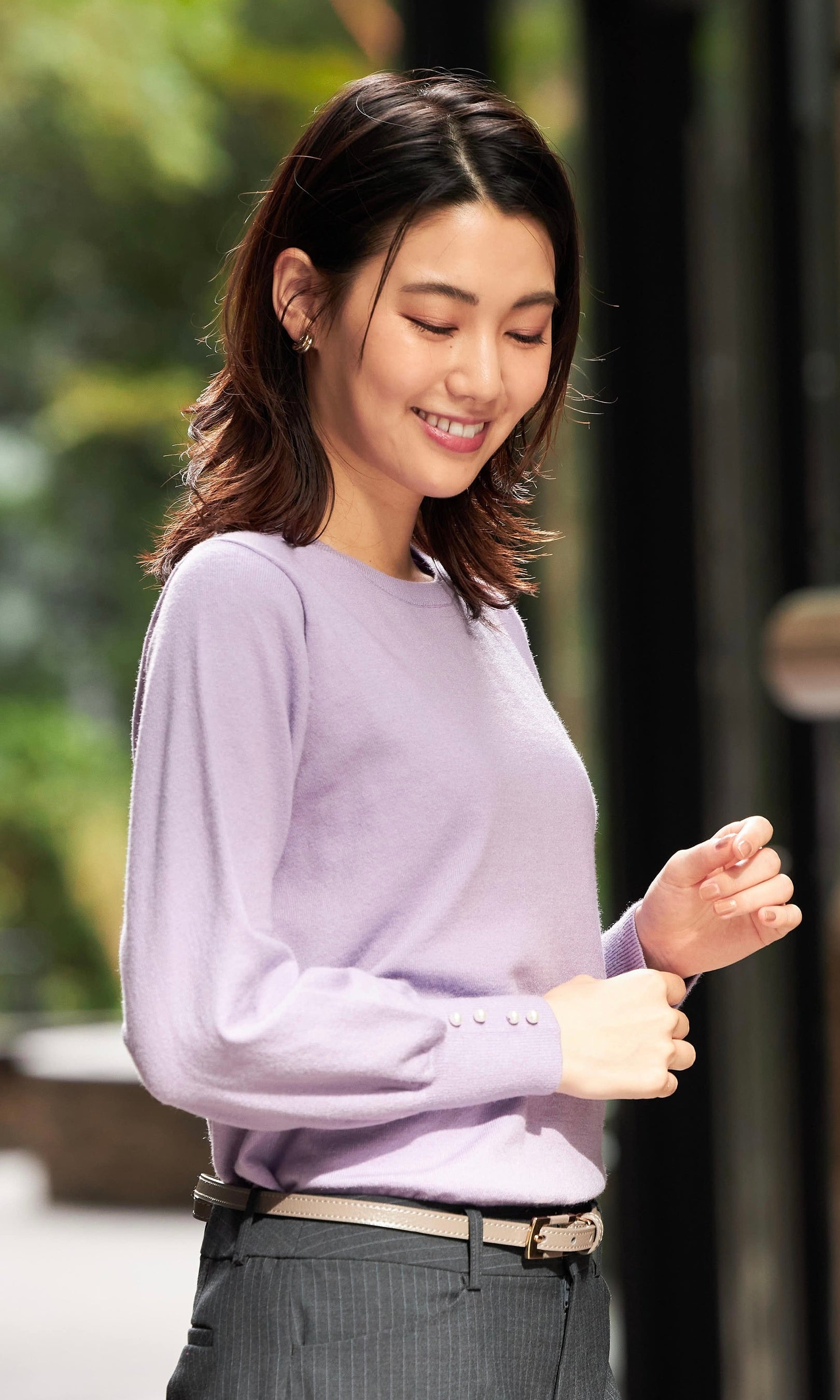 カラー:袖パールクルーネック・・・ブラック、ボルドー、ラベンダー