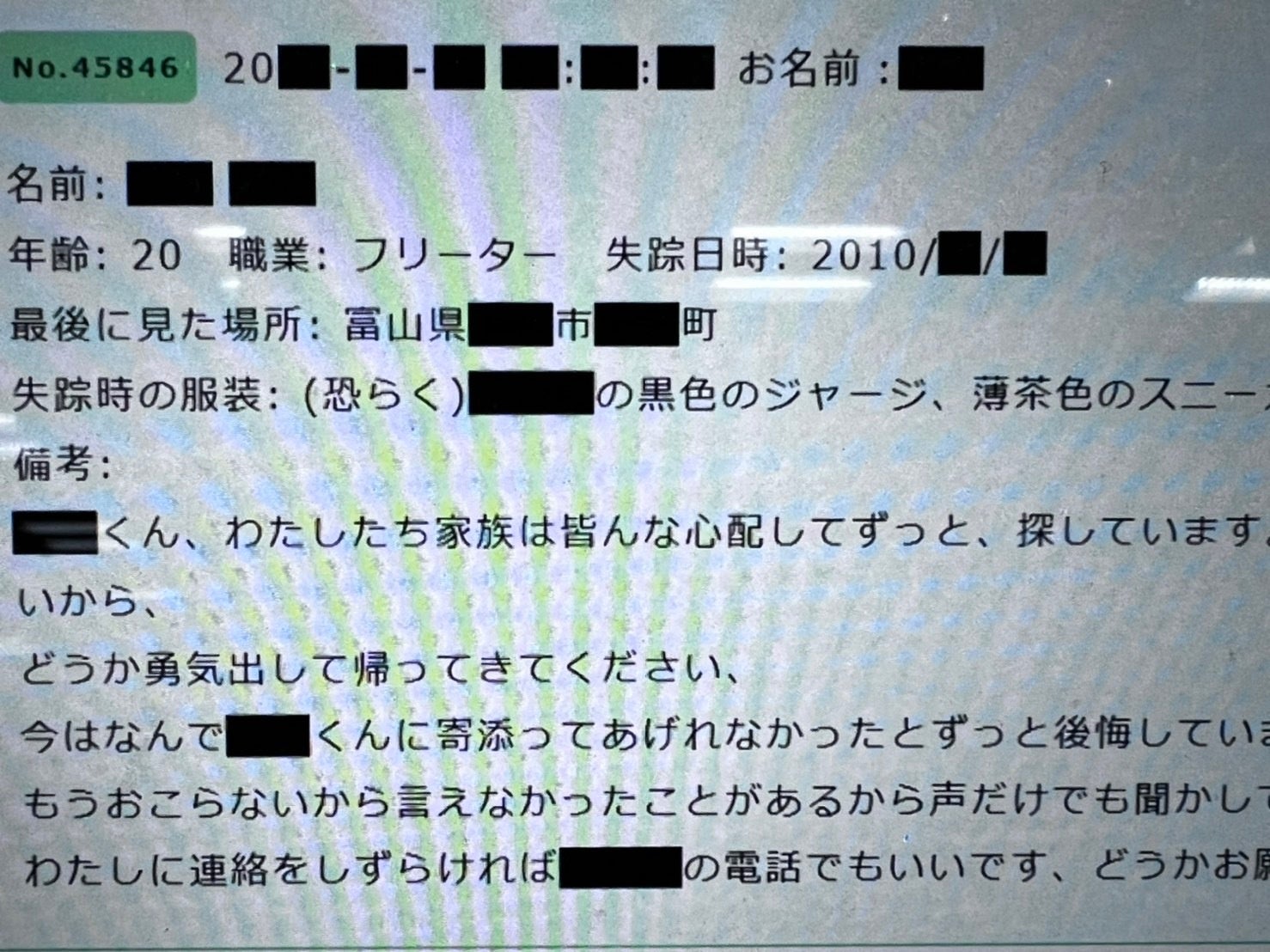 なお、本展で紹介した行方不明者を捜索する必要はありません。
