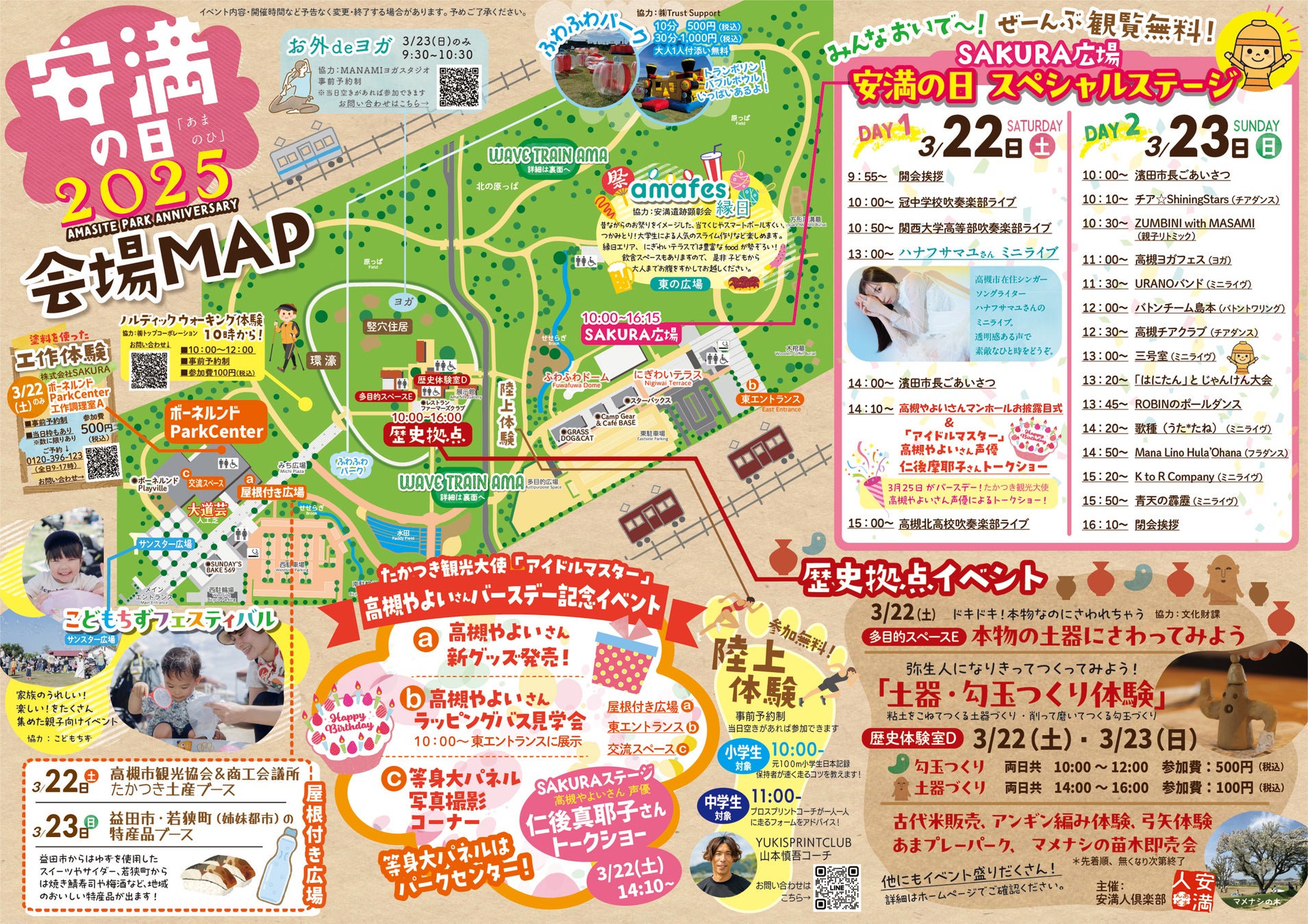 一次オープンから6年目、全面開園からは4年目となる周年記念の催しとして、毎年3月に「安満の日」イベントを実施しています。今年は規模を拡大し、初となる土曜日・日曜日の2日間開催!