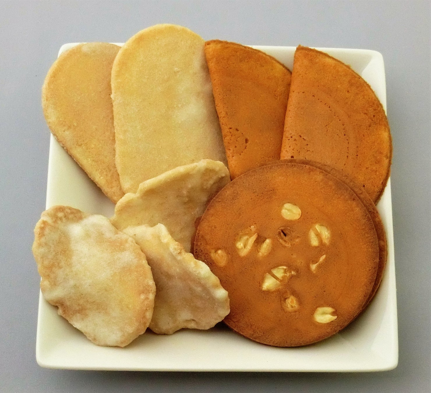 生姜糖で仕上げた加賀名物の「しばふね小判」などの加賀せんべいは、どれも上品な味わいです。