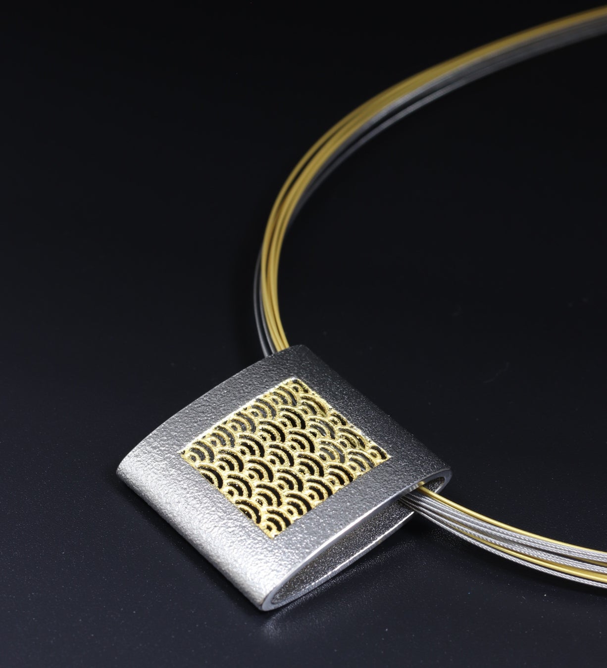 日本古来の吉祥文様「青海波」を金箔で施した和モダンなネックレスです。