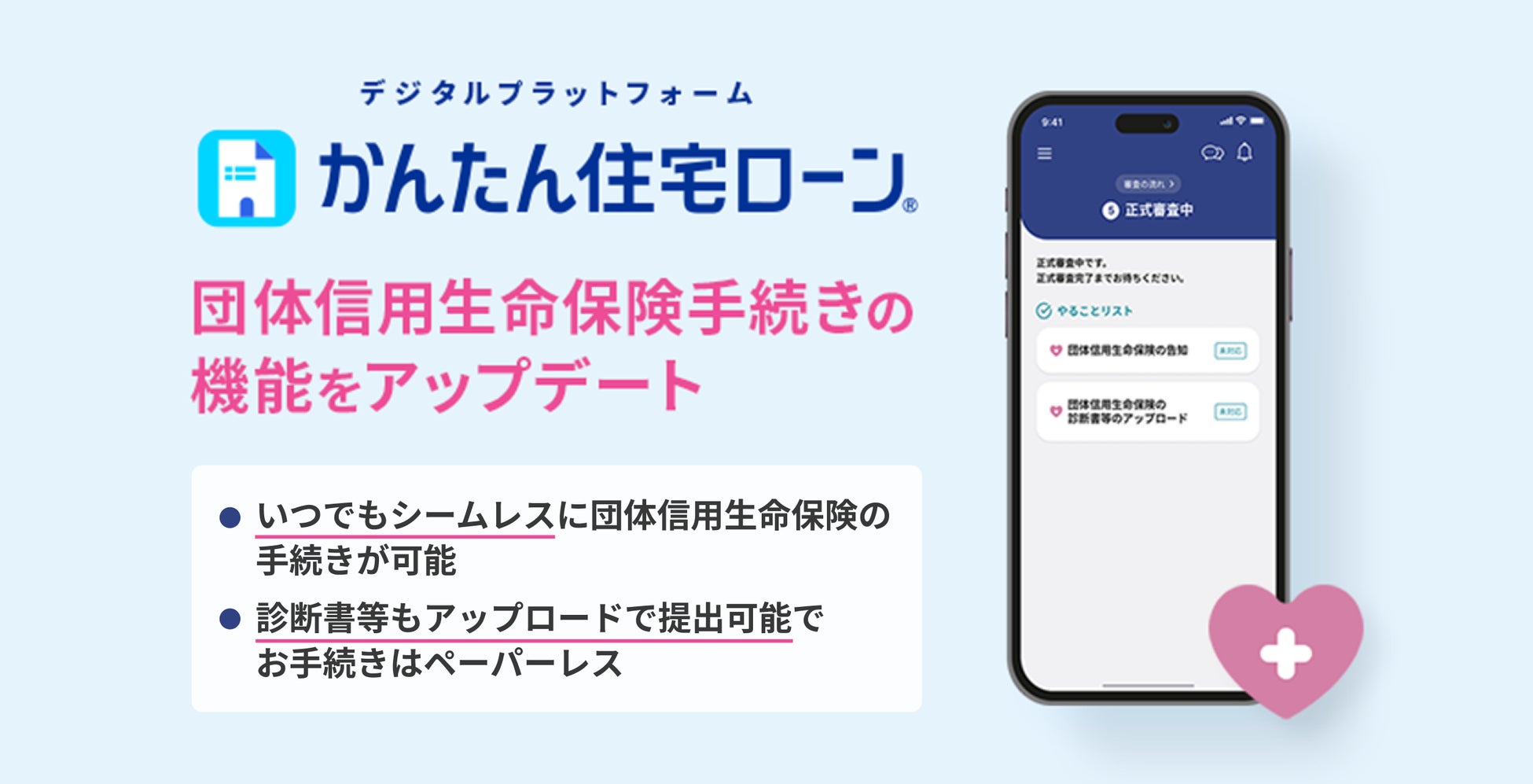 このたび、「かんたん住宅ローン」に団体信用生命保険の手続き機能を追加することで、「かんたん住宅ローン」において住宅ローンに関するすべての手続きを完結することができます。