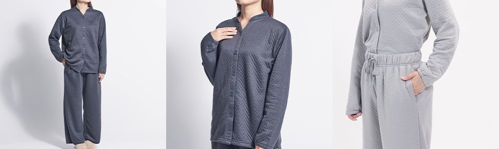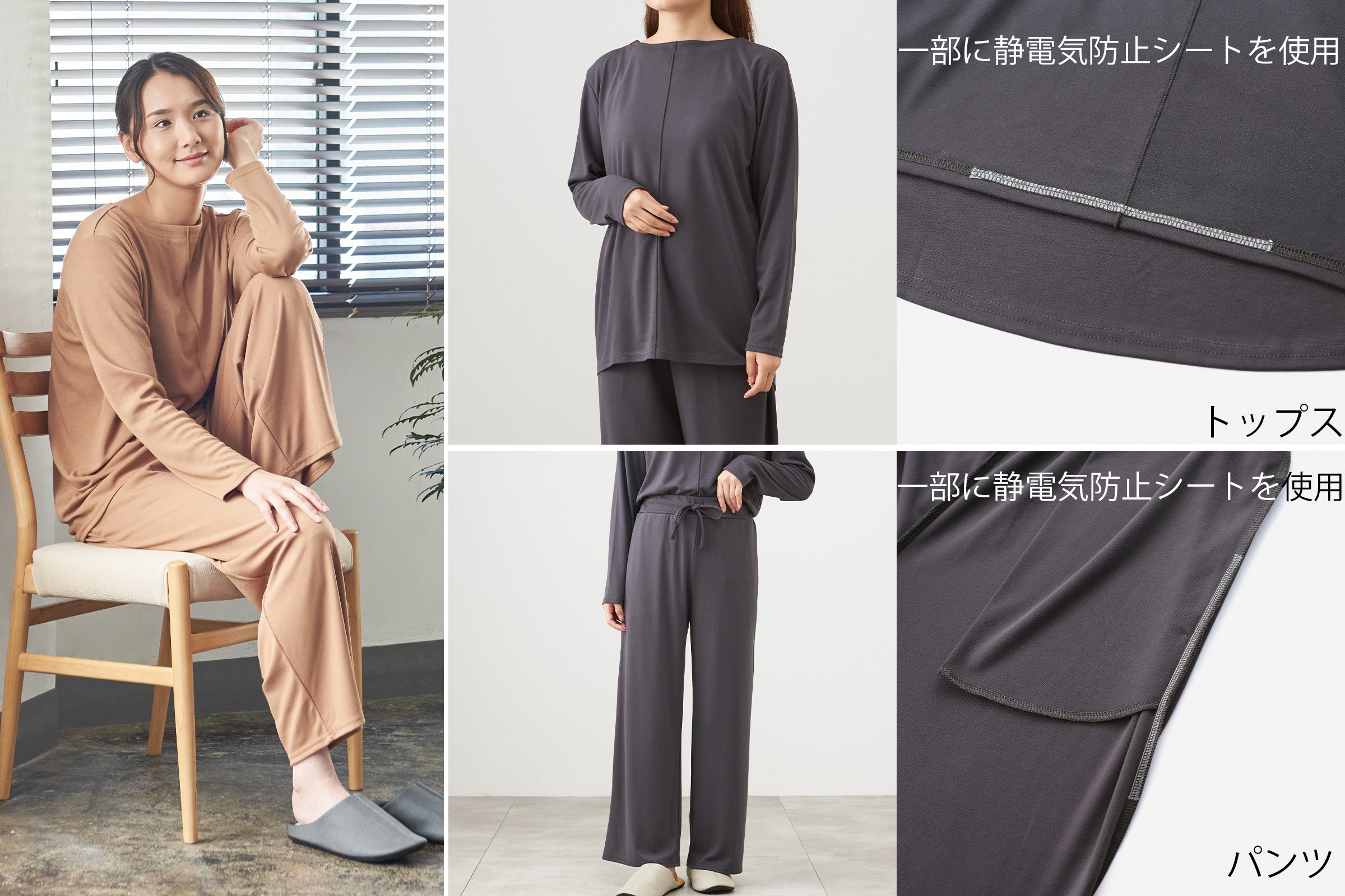 4月に発売したケユカリラックスウェアシリーズを秋冬仕様にアップデート。乾燥などによって発生する静電気を抑えるテープを付けることで静電気を抑えてくれます。また、洗濯の際にシワがつきにくい素材のためお手入れが簡単で、普段のお家使いにも旅行先でもご活用いただけます。