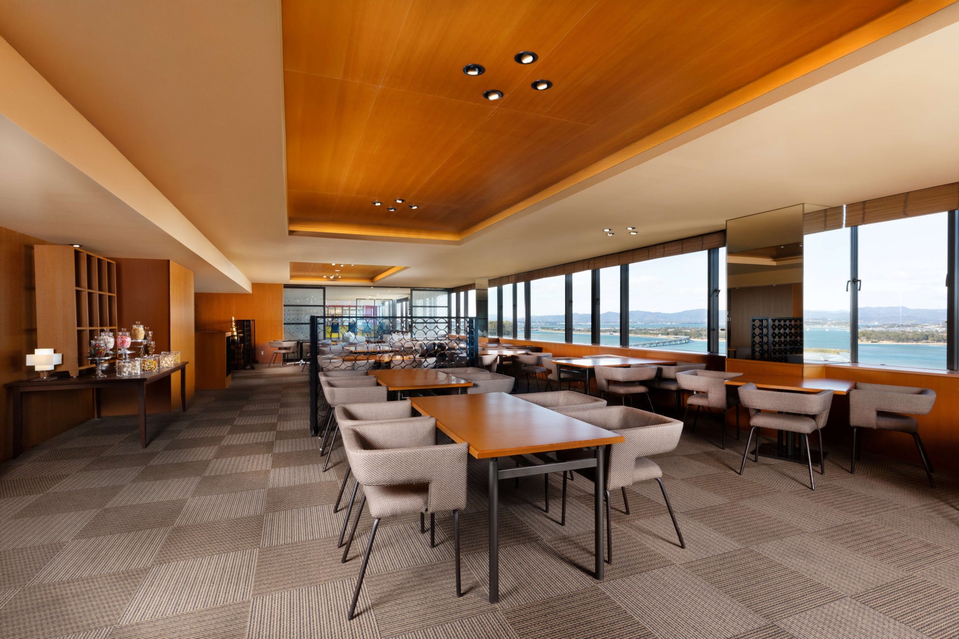 Executive Lake View Loungeは当ホテルの最上階13階に位置し、窓の向こうに広がる青く澄み渡る浜名湖を一望できます。ご利用時間帯は15:00~18:00と21:00~23:00で、青空と湖の爽やかな景色や夕陽に染まるドラマティックな様、夜の静けさなどを感じ、時間の流れとともに移りゆく景色を眺めることができます。
