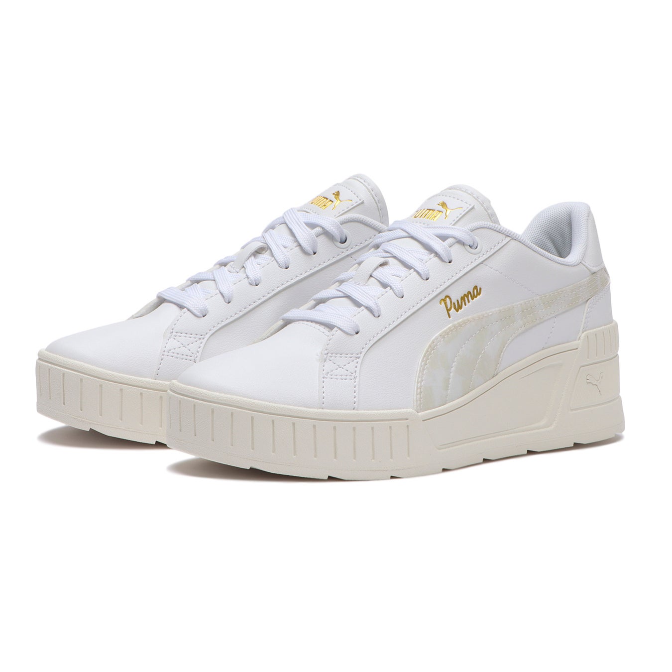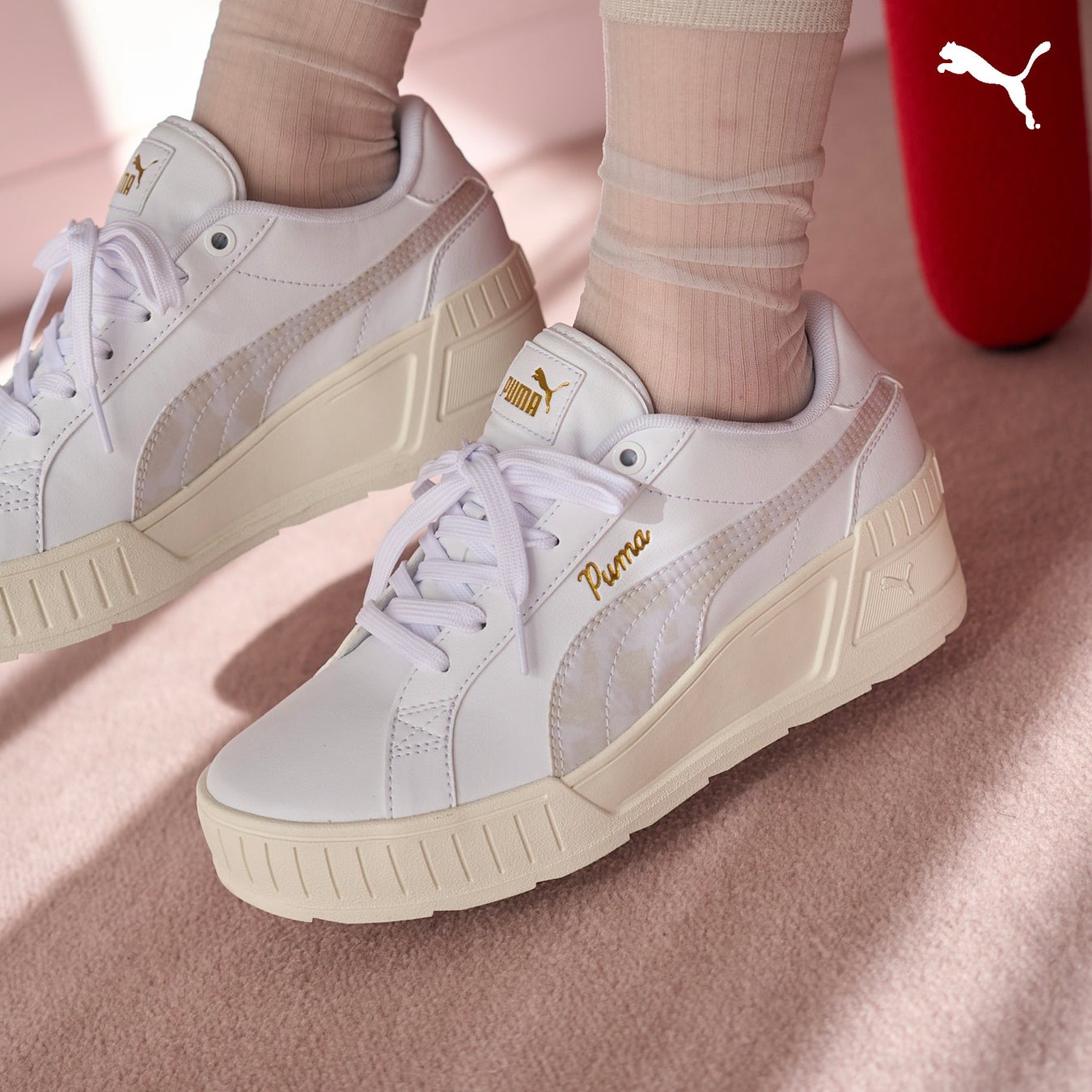 プーマの厚底シリーズの代表モデル「カルメン」に、ウェッジソールタイプの別注デザインが登場!「カルメン ウェッジグラフィック」は、定番のシルエットに新たな高さを加え、モダンで大胆な印象にアップデート。スニーカーの快適さはそのままに、スカートやワンピースなど幅広いスタイリングにもマッチする万能な一足。