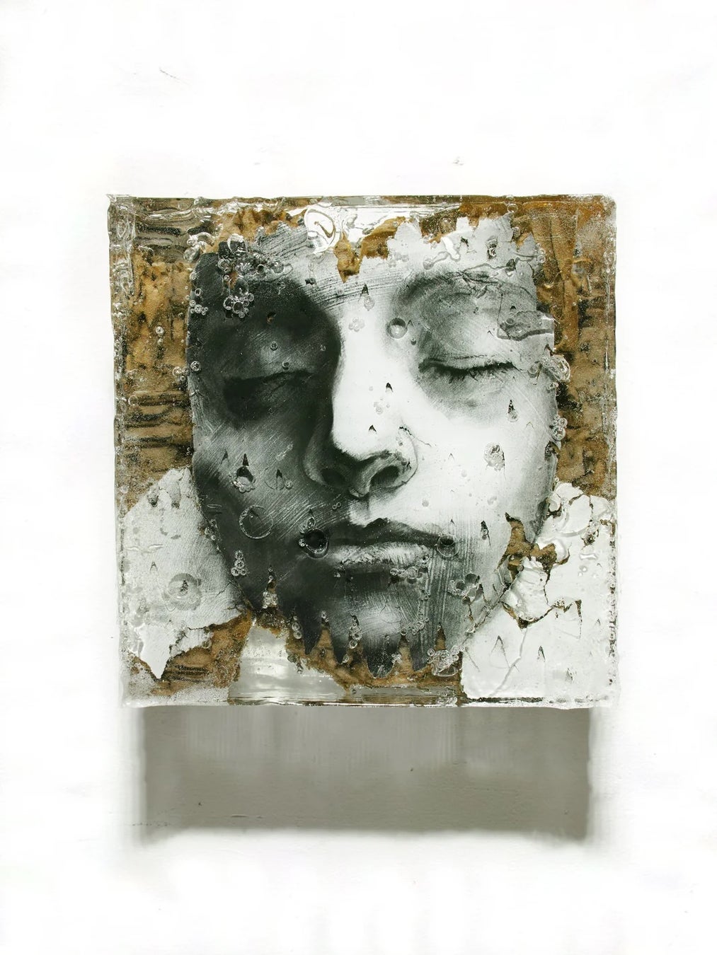 本展では、ダンボールと樹脂を使った革新的な手法で描く馬場敬一の最新シリーズ「RESIN 死と再生」を展示しています。うつ病の苦しみから復活する過程を一つの物語として展開しながら、破壊と再生を通じた生命力が込められています。