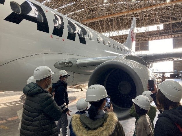 同ツアーでは、飛行機の整備を行う格納庫で実際に整備士が作業している姿や飛行機を間近で見学できます。また、運航乗務員・客室乗務員が訓練で使用する施設で、運航乗務員による模擬コックピットを使用した航空教室や客室乗務員による機内サービス体験を実施します。