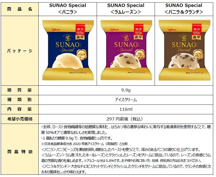 濃厚な風味のプレミアム系アイスクリームを、糖質9.9gで実現「SUNAO Special」が3月5日(火)に新登場