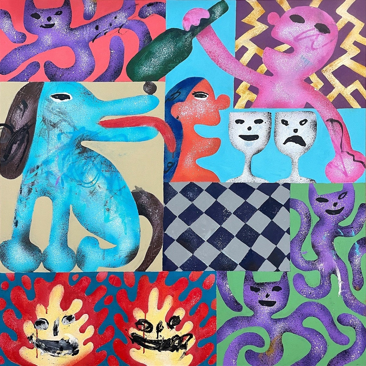 大河原健太郎は、東京とソウルを拠点に、絵画、彫刻、書籍、ストリートウェアのコレクションやコラボレーションなど、さまざまな媒体で活動しているアーティストです。大河原の作品は、「芸術を作ることは愛の表現であり、互いにつながる手段である」という彼の長年の信念を追求しています。それぞれの作品には、シュールでありながら親しみやすいキャラクターが登場します。人間、生き物、そして擬人化されたオブジェクトのカクテルが、親密かつ奇妙な方法で互いに作用し、誰もが愛着を持てる世界を作り出しているのです。大河原の鮮やかな色彩と様式化されたモチーフの世界の中で、彼は目と目を合わせ、顔を合わせて直接コミュニケーションをとることの重要性を訴えています。私たちが主にインターネット上で考えや感情を交換しているように見えるこのデジタル時代に、大河原の作品は、もう一度考えることを、また互いの違いを認め合う事を、そして私たちが本来持っているはずの"人間性"を取り戻すことを訴えかけているのです。