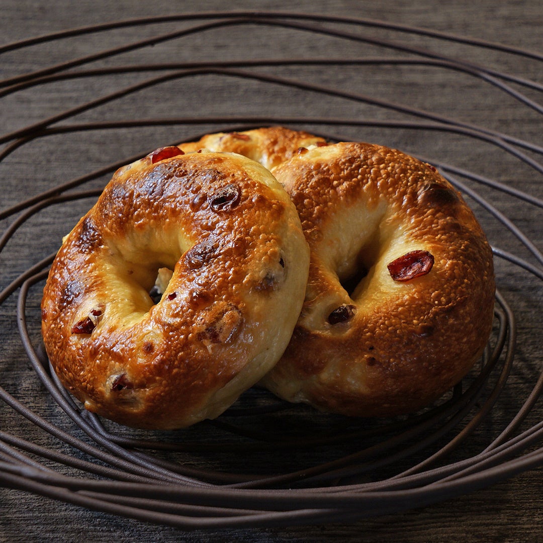 ベーコンとカイエンペッパーを練りこんだベーグル。辛い物好きにはたまらない一品。