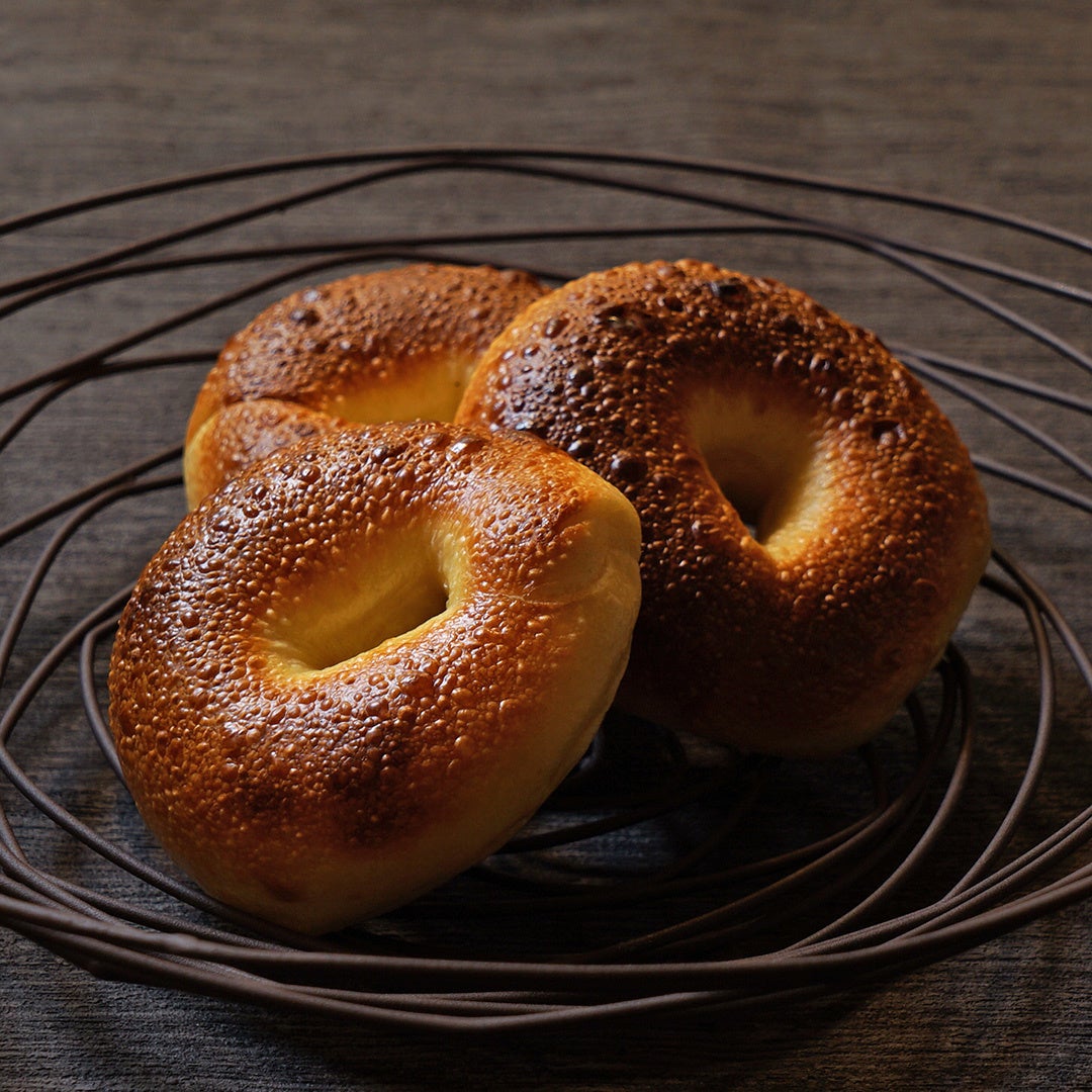 350°Cの高温で焼くことで、外側はカリッとしながらも中はもっちりした食感のモントリオールスタイルベーグルは、焼きたての1日目はもちろん2日目ももっちり美味しくいただけるのが特徴です。